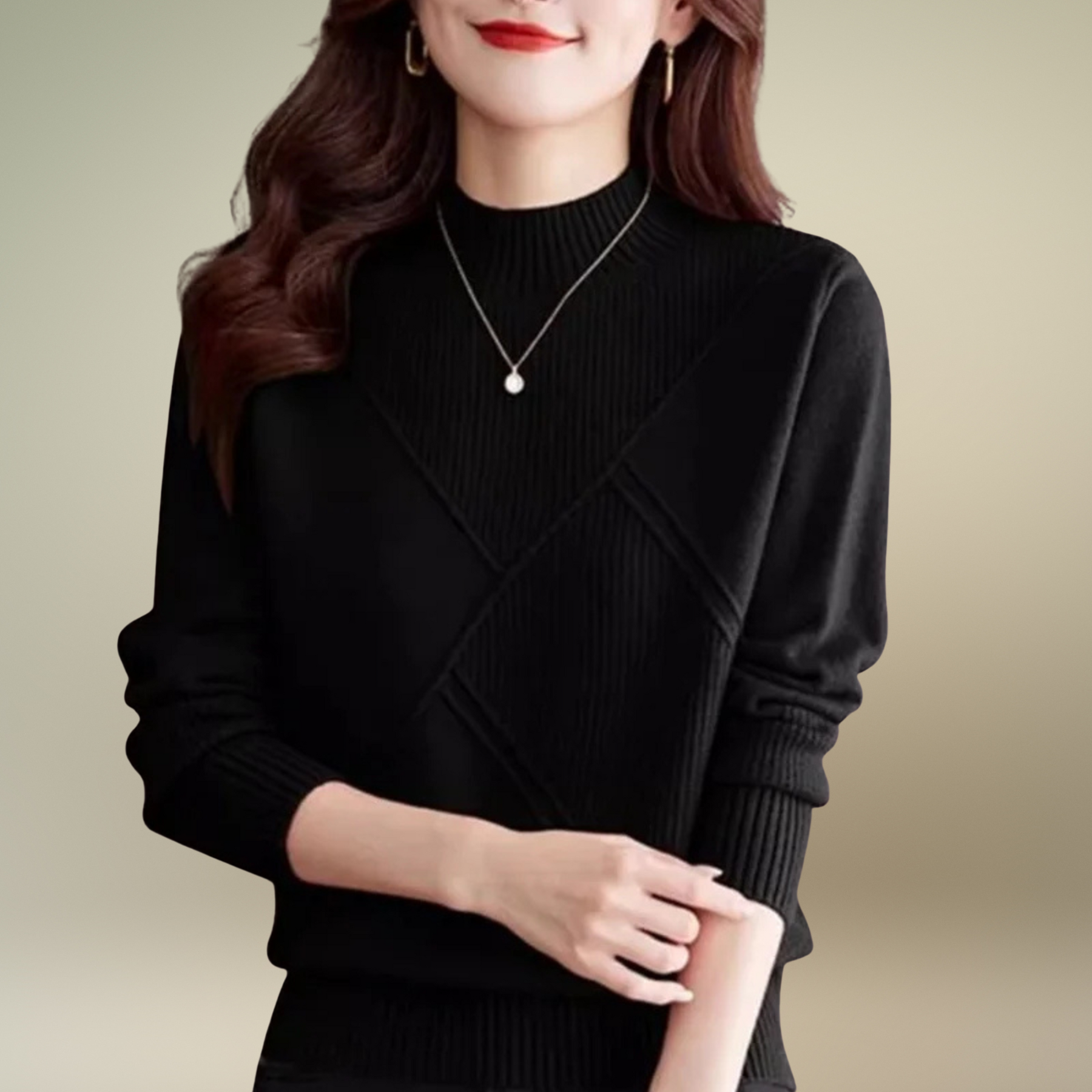 This sophisticated yet effortless sweater is defined by its diagonal ribbing that subtly contours the body with clean, sculpted lines. The refined mock neck and elongated ribbed cuffs add a tailored touch, while the breathable mid-weight knit ensures warmth, comfort, and structure that lasts.